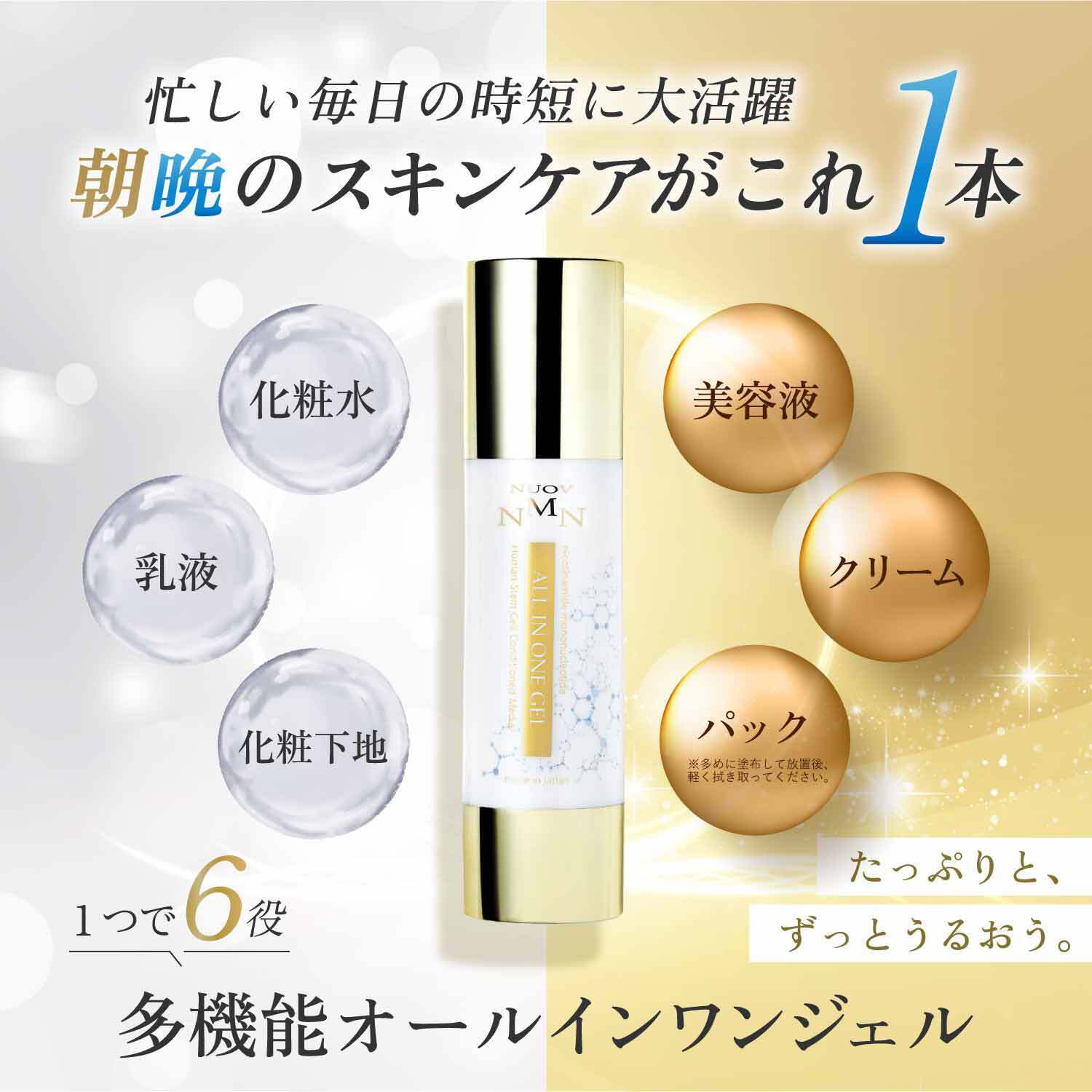 「ほうれい線が気になる‥」「シワ、たるみ、乾燥肌をなんとかしたい‥」そんなあなたのために、研究開発を重ねて作り上げたエイジンクケアのためのNUOVのNMNオールインワンジェルです。